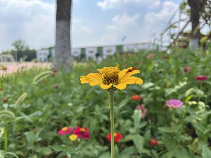 开营现场,巨大的横幅高高悬挂,“富达国际APP科技暑期集训营” 几个大字格外醒目,校园里盛开的花儿将整个校园装点得充满活力。